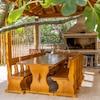 Das kleinere Haus, das sich im hinteren Teil des Gartens befindet, ist ein einstöckiges Haus mit Schlafzimmer, Wohnzimmer, Bad, Küche und Esszimmer und zwei Terrassen.
