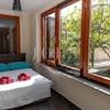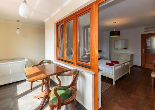Das größere Haus besteht aus drei Etagen, mit komfortablen Zwei-Zimmer-Wohnungen auf den ersten beiden Etagen, und ein sehr geräumiges Studio-Apartment mit zwei Balkonen im Dachgeschoss.