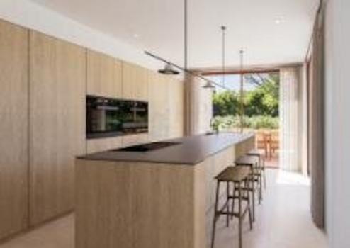 Die exquisit gestaltete Küche geht nahtlos in das geräumige Wohn- und Esszimmer über und schafft so einen gemütlichen und funktionalen Raum mit großen Fenstern, die den Innenraum mit natürlichem Licht durchfluten und Ihnen einen spektakulären Blick auf das Meer und die Berge ermöglichen. Im Außenbereich lädt eine große Terrasse mit privatem Pool zum Entspannen ein, während der angelegte Garten mit pflegeleichter mediterraner Vegetation das Haus in eine Atmosphäre der Ruhe und Schönheit hüllt.