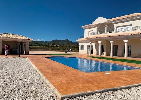 NEU GEBAUTE VILLEN IN PINOSO~~Sie haben die Wahl zwischen Villen mit traditionellem spanischem Flair oder supermoderner Ausstattung, hell und sauber. ~Es stehen verschiedene legale Baugrundstücke zur Verfügung (rustikal mit mindestens 10.000 m2), einige in Gehdistanz zur Stadt, einige ganz privat und unsere beliebtesten sind nur 5-10 Minuten mit dem Auto von einer Stadt entfernt. ~Wir haben ein Grundstück für jeden Geschmack, alle mit atemberaubender Aussicht und alle haben Wasser und Strom im Preis inbegriffen und High-Speed-Internet verfügbar. ~Die Häuser werden vom größten und besten Bauunternehmen in der Gegend gebaut und sind mit hochwertigen Materialien ausgestattet, die für eine perfekte Ausführung sorgen. ~Alle Häuser verfügen über eine 2 m lange Terrasse aus gestampftem Beton um den Pool (Farbe und Muster nach Wahl), 1 m um das Haus, einen bewachten Eingang, einen 3.000 m2 großen Zaun, eine vorinstallierte Klimaanlage, eine Standardküche, eine Sicherheitstür, deutsche Dreh-Kipp-Fenster (oder Schiebefenster, falls gewünscht), einen eingebauten Kamin, eine Vorinstallation für Fernsehen und Internet, eine Kiesauffahrt und einige Meter um das Haus herum sowie eine Klärgrube. ~Die Bäder verfügen über eine Duschsäule, eine Duschwanne oder eine Badewanne, Waschbecken (verschiedene Farben zur Auswahl) mit Waschbecken, Armaturen und Spiegeln sowie eine große Auswahl an Wandfliesen. ~Große Auswahl an keramischen Bodenfliesen, verschiedene Farben, Holzoptik, etc. ~Die Küchen beinhalten Schränke mit Standardtüren und Griffen, wie in den Plänen angegeben, Edelstahlspüle und Wasserhahn, Vorinstallation für Ofen, Geschirrspüler, Dunstabzug. Verschiedene Granit-Arbeitsplatten zur Auswahl sind im Budget enthalten, andere Stein-Arbeitsplatten sind als Extras erhältlich. Weiße Ware nicht inbegriffen. ~Marmortreppe (cremefarben, weiß oder grau) und Geländer inbegriffen, plus Geländer für die vordere Veranda. ~Großes festes Glasfenster auf der Treppe für mehr Licht. ~Auswahl der Fliesen und der Stufen für das Schwimmbad. Wahl des Granits für die Außentreppen und Fensterbänke des Hauses. ~Sie können das Haus nach Ihren Wünschen gestalten, die meisten internen Änderungen sind kostenlos, die Häuser können erweitert werden und wir können sogar Ihr eigenes Design bauen. ~Gegen Aufpreis können Sie einen größeren Pool, eine Einzel- oder Doppelgarage, ein Gästehaus, usw. erwerben.~~~Die schöne und blühende Stadt Pinoso liegt etwa 45 Minuten landeinwärts von Alicante und den weißen Stränden der Costa Blanca und nahe der Grenze zwischen Murcia und Alicante.~~Sie hat knapp 8.000 Einwohner. Pinoso, auch bekannt als El Pinos, ist nach den Pinien benannt, die die Bergketten der Gegend bedecken. Pinoso bietet ein spanisches Landleben, keine Ampeln, kaum Verkehr, praktisch die einzigen Staus werden von den Traktoren verursacht, die die Trauben zur Bodega bringen. Die Felder sind mit Weinreben, Mandeln und Oliven bepflanzt. Im Februar sind die Felder mit rosa Mandelblüten gefüllt.~~Pinoso hat viele Bars, Restaurants und Geschäfte, ein neues 24-Stunden-Ärztezentrum, Zahnärzte, zwei Grundschulen und eine weiterführende Schule, ein Theater. Es gibt ein ausgezeichnetes Sportzentrum mit Freibädern, Tennis- und Fußballplätzen, einer Turnhalle, einer Bibliothek und vielen anderen Einrichtungen, darunter ein schöner Picknickplatz unter den Kiefern mit Grillplätzen, Sitzgelegenheiten und fließendem Wasser.