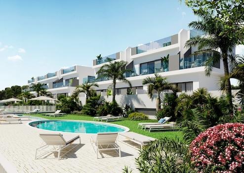 NEUBAU WOHNANLAGE IN LOS BALCONES, TORREVIEJA~~Neubau Wohnanlage mit Doppelhaushälften und Bungalows in Los Balcones mit Blick auf den rosa See.~~Neubau Bungalows im obersten Stockwerk mit 2 Schlafzimmern, 2 Bädern, offener Küche mit geräumigem Wohnzimmer, Einbauschränken, Terrasse, privatem Solarium und Tiefgaragenstellplatz.~~Neue exklusive Wohnanlage mit großen Gemeinschaftsbereichen; Gärten, Garten-Turnhalle, Spielplatz, 2 große Gemeinschaftspools - einer davon für Erwachsene und der andere für Kinder.~~~Los Balcones ist eine kleine Stadt in der Nähe von Torrevieja Süd.~~Torrevieja ist eine spanische Stadt in der Provinz Alicante, an der Costa Blanca. ~~Sie ist bekannt für ihr typisch mediterranes Klima und ihre Küstenlinie. Entlang der Sandstrände gibt es Strandpromenaden mit Ferienanlagen. ~~Das kleine Meeres- und Salzmuseum beherbergt Ausstellungen über die Fischerei- und Salzgeschichte der Stadt. ~~Im Landesinneren befindet sich der Naturpark Lagunas de La Mata-Torrevieja mit Wanderwegen und zwei salzhaltigen Lagunen, von denen eine rosa und die andere grün ist.~~Der Flughafen Alicante ist 40 Minuten und der Flughafen Murcia etwa 1 Stunde entfernt.~~