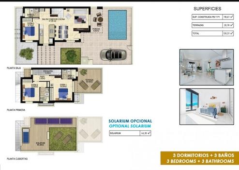 NEU GEBAUTE VILLEN IM VISTABELLA GOLF RESORT~ ~ Neubau von Luxusvillen über 2 Etagen im Vistabella Golf Resort, zwischen San Miguel und Los Montesinos an der Orihuela Costa.~ ~ Villen mit 3 Schlafzimmern, 3 Bädern, einem offenen Wohnzimmer mit Küche, privatem Garten mit Pool und Parkplatz.~ ~ Optional können Sie eine private Sonnenterrasse gegen einen Aufpreis haben.~ ~ ~ Auf Vistabella Golf gibt es Platz für alle. Der Platz ist so angelegt, dass jeder Spieler ihn von Anfang bis Ende genießen kann. Seine hügeligen Straßen, strategischen Bunker oder Seen sind einige der Merkmale, die ihn zu einem der attraktivsten Plätze der Gegend machen, wo jeder Schlag eine Herausforderung und ein Genuss für die Sinne ist.~ ~ Die 18 Löcher von Vistabella Golf, Par 72 und mehr als 6.000 Meter lang, wurden nach den Richtlinien der modernen Felder mit 4 Abschlägen von großer Amplitude an jedem Loch, breiten Fairways und erhöhten Bunkern entworfen.~ ~ Das Clubhaus und das Restaurant von Vistabella Golf sowie die örtlichen Bars und Geschäfte sind in 5 Minuten zu Fuß zu erreichen. Die geschäftige Stadt San Miguel de Salinas und Los Montesinos sind nur 5 Autominuten entfernt und die schönen Strände von Guardamar, die mit der Blauen Flagge ausgezeichnet sind, sind nur 15 Autominuten entfernt. ~ ~ Der Flughafen Alicante ist 35 Minuten entfernt und der neue Flughafen Corvera Murcia ist 45 Minuten entfernt.~