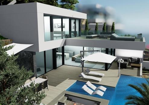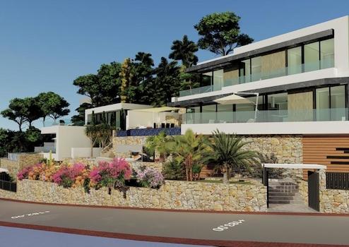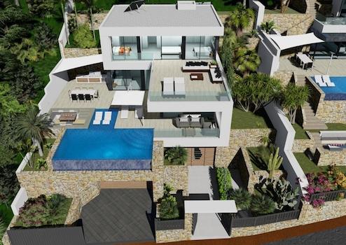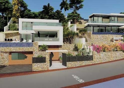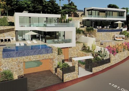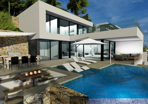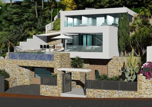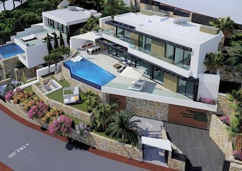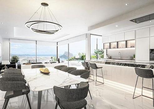 EXKLUSIVE VILLA MIT SPEKTAKULÄRER AUSSICHT~ ~ Neubauvilla in Calpe mit herrlichem Blick auf das Meer, Peñón und die Bucht von Calpe.~ ~ High-Tech-Villa mit hervorragenden hochwertigen Baumaterialien.~ ~ Das Haus ist auf 3 Ebenen gebaut und durch einen Innenaufzug verbunden.~ ~ Das Haus verfügt über Hausautomation, Grillplatz, Chillout-Bereich, Fußbodenheizung, Design-Garten, Infinity-Pool.~ ~ Das Hotel liegt in der Urbanisation Maryvilla de Calpe, nicht weit vom Strand und allen notwendigen Dienstleistungen entfernt.