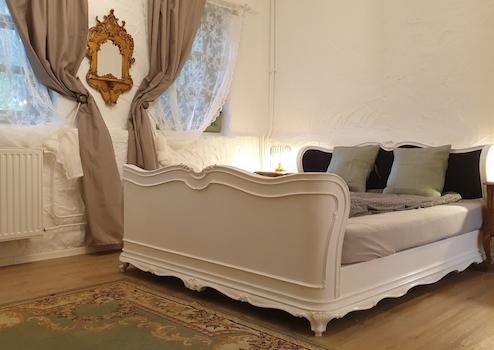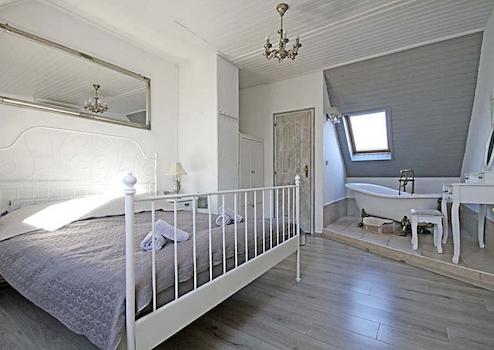 Die gesamte Wohnnutzfläche der 3 Gebäude des Anwesens beträgt 750 Quadratmeter. Jedes Haus ist zweistöckig und verfügt über Zimmer mit eigenem Bad oder einer speziell entworfenen freistehenden Badewanne und einem separaten Waschbecken. Jedes der 11 Zimmer verfügt über eine andere Raumaufteilung, ein besonderes Design und eine einzigartige Atmosphäre.