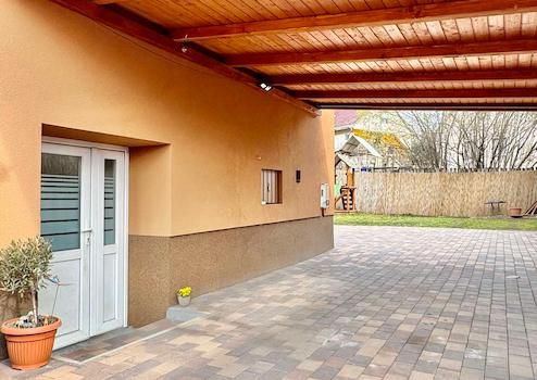Parkolás egy autó részére a bejárat előtt FEDETT térkövezett részen de további három autó parkolása udvaron belül megoldható.
