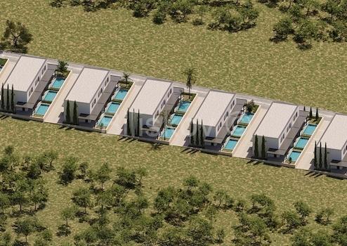 Die moderne Wohnanlage besteht aus acht Reihenhäusern im modernen Design und befindet sich in einer ruhigen Wohngegend von Mandre auf der Insel Pag, nur 500 Meter vom Meer und dem Hafen Mandre entfernt.