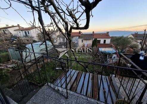 Kastav – Reihenhaus mit 90 m² und einem 90 m² großen Hof. Das Haus besteht aus einem Erdgeschoss und einem Obergeschoss. Im Erdgeschoss befinden sich ein Flur, eine Küche mit Essbereich, ein Wohnzimmer mit Zugang zur Terrasse und zum Garten, ein WC, ein Abstellraum, eine Garage und ein kleiner Keller im Untergeschoss. Im Obergeschoss befinden sich drei Schlafzimmer mit zwei Balkonen und ein Badezimmer.