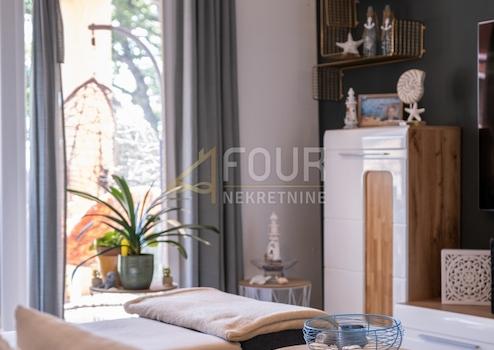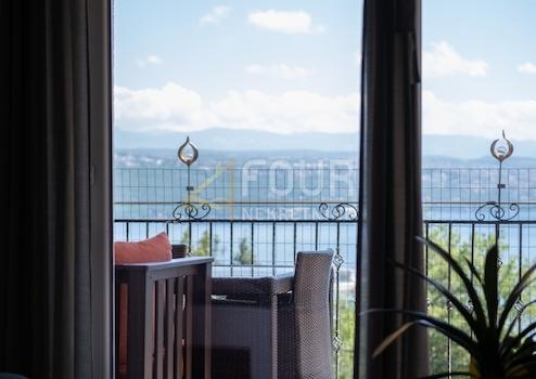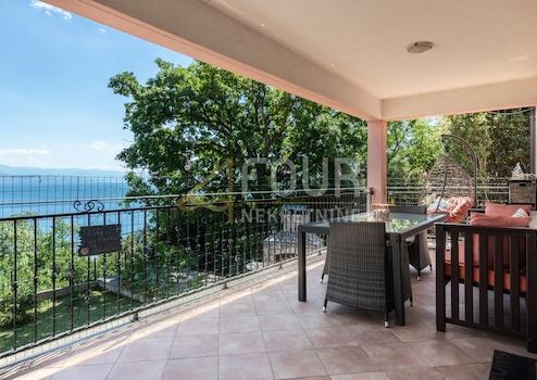 In attraktiver und ruhiger Lage in Opatija, nur 500 Meter vom Meer entfernt, steht eine geräumige und hochwertig ausgestattete Wohnung mit Garten, Terrasse und offenem Blick auf das Meer und die Stadt zum Verkauf.