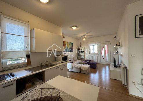 Die Wohnung befindet sich im zweiten Stock eines Einfamilienhauses und besteht aus einem Wohnzimmer mit offener Küche, einem Schlafzimmer, einem Badezimmer und 2 Balkonen.