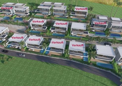 Es ist noch gar nicht angefangen, schon sind Stand heute 03.08.2022 bereits 11 Villen (siehe Plan) verkauft.