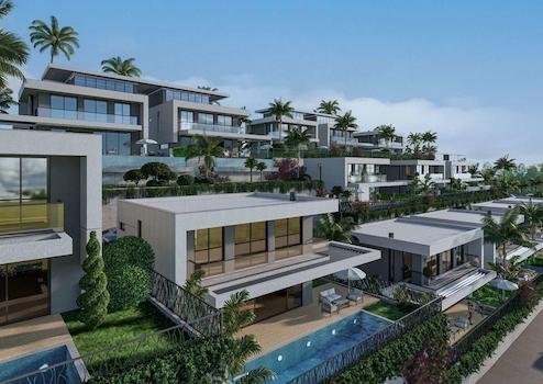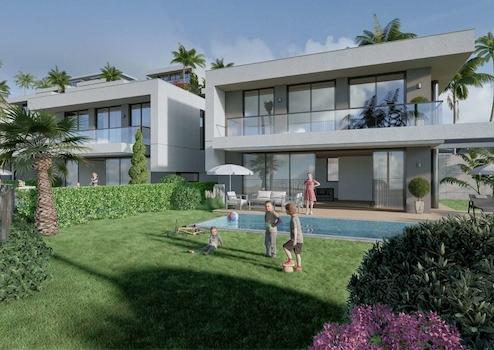 Premium modern gestaltete 18 Villen mit privatem Pool und Parkplatz, 200- 225 m² brutto. * Dieses Projekt umfasst eine Grundstücksfläche von 6.533 Quadratmetern und eine Baufläche von 5.026 Quadratmetern. * Verfügbar für die türkische Staatsbürgerschaft und Aufenthaltserlaubnis * Das privilegierte Nutzungsrecht aller wunderschönen Hoteleinrichtungen des Goldcity Hotels durch den Besitz einer Le Jardin Villa *