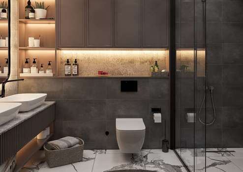 • Moderner Badezimmerschrank mit Spiegel und LED-Licht