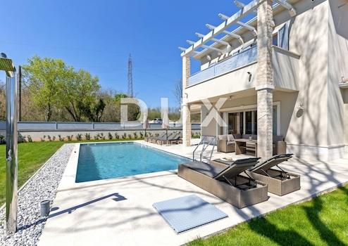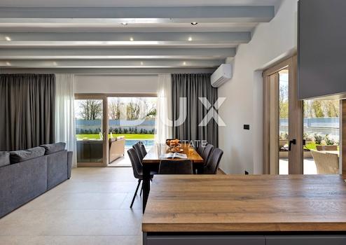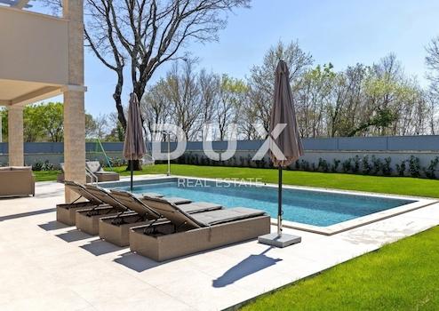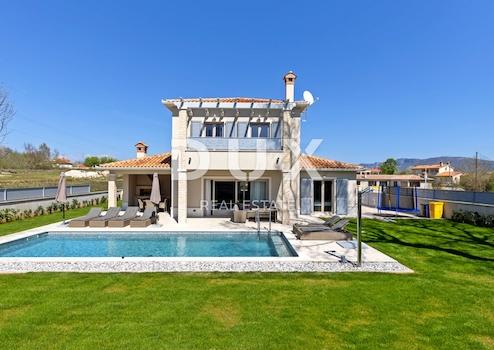 An der Südostküste Istriens, wo grüne Hügel auf das Meer treffen, wo Natur und Kulturerbe sich vereinen, gibt es zwei Städte ähnlicher Größe mit unterschiedlichem, aber sich ergänzendem Charakter – Labin und Rabac. Die malerische Stadt Labin erhebt sich auf einem 320 Meter hohen Hügel, nur vier Kilometer von den weißen Kieselstränden von Rabac entfernt. Labin, das kurzzeitig zur unabhängigen Republik erklärt wurde, ist mit seiner reichen Geschichte und dem Bergbau, der diese Region geprägt hat, heute eine faszinierende Stadt der Widersprüche. Alt und Neu, Geschichte und Gegenwart, Tourismus und Kunst. In der Nähe der Stadt Labin steht ein Haus mit Swimmingpool zum Verkauf. Es liegt in einem ruhigen Dorf, umgeben von Natur, Einfamilienhäusern und Ferienhäusern und bietet die perfekte Balance zwischen ländlicher Umgebung und der Nähe zu städtischen Annehmlichkeiten und dem Meer. Neben der Lage, die umfassenden Komfort bietet, zeichnet sich das Objekt auch durch die Bauqualität aus, die langfristige Zufriedenheit und Wohnqualität garantiert. Es ist als einzelne Wohneinheit konzipiert, die sich über zwei Etagen mit luftigen, von natürlichem Licht durchfluteten Innenräumen erstreckt, die Eleganz ausstrahlen. Das Erdgeschoss besteht aus einem offenen Raumkonzept, das Wohnzimmer, Esszimmer und Küche vereint und Zugang zu einer überdachten Terrasse mit einer Sommerküche bietet. Ergänzt wird der Grundriss des Erdgeschosses durch ein Schlafzimmer, ein Badezimmer und einen Technik-/Abstellraum. Der erste Stock besteht aus zwei Schlafzimmern mit eigenen Bädern und Zugang zu einer mit einer Pergola überdachten Terrasse. Der Hof ist landschaftlich gestaltet und gärtnerisch gestaltet, und für vollkommene Harmonie sorgt ein elegant integrierter 40 m² großer Pool mit Liegewiese. Die hervorragende Lage und die räumliche Aufteilung des Innen- und Außenbereichs dieser Immobilie bieten die Möglichkeit für ein komfortables Familienleben oder eine Investition in ein touristisches Vermietungsgeschäft.