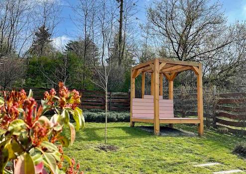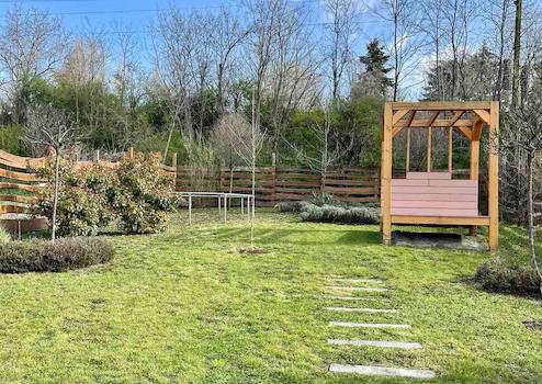- Hier gibt es einen Whirlpool für 5 Personen, ein Trampolin, eine Sonnenliege, einen Grill und einen Wasserkocher