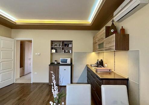 -HELYISÉGEK apartmanonként: amerikai konyhás nappali, hálószoba, fürdőszoba, közlekedő
