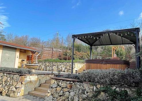 -itt kapott helyet az 5 személyes jakuzzi, trambulin, napozó pad, nyársaló, bográcsozó