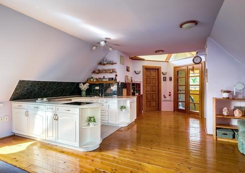 Wir bieten ein besonderes 200 m² großes Familienhaus auf einem 1381 m² großen Grundstück auf der malerischen Hosszú-Bergseite von Pilisszántó zum Verkauf an. Das Anwesen wurde ursprünglich 1986 erbaut und 1995 nach den Entwürfen des renommierten Architekturbüros Makovecz erweitert und vereint so traditionelle und organische Architekturelemente.