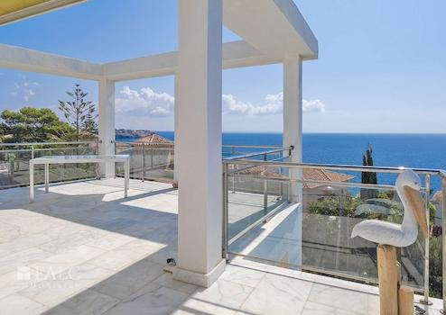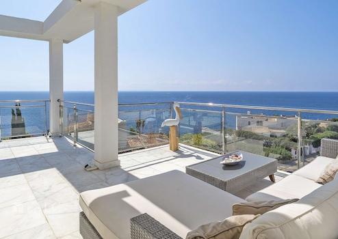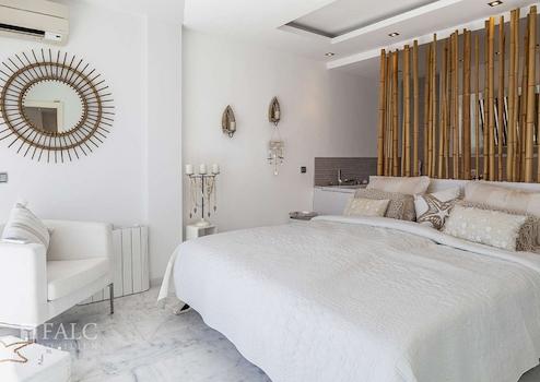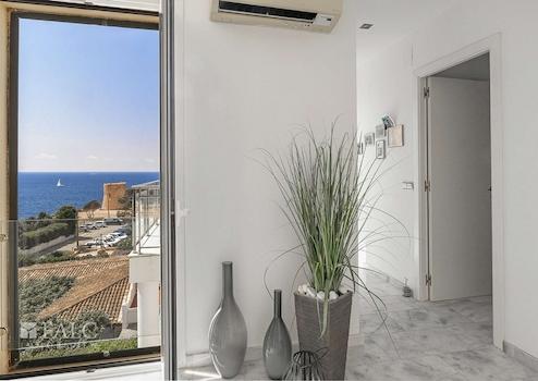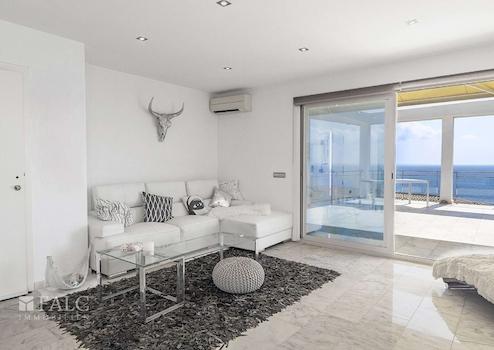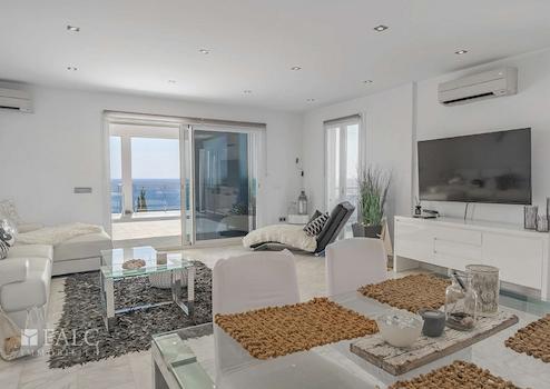 Schon beim Betreten dieses stilvollen Refugiums spürt man die besondere Energie, die von den großzügigen, lichtdurchfluteten Räumen ausgeht. Bodentiefe Fenster durchfluten das Penthouse mit Sonnenlicht und öffnen den Blick auf das tiefblaue Meer und die unberührte Küstenlandschaft – ein Panorama, das jeden Tag aufs Neue verzaubert.