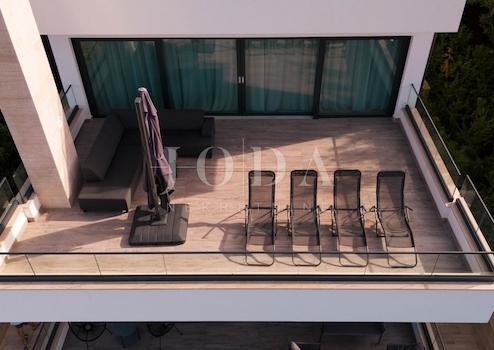 Eine große Terrasse mit Blick auf das Meer, die Insel Krk und die Brücke von Krk. Einbauschränke mit versteckten Türen. Hinter einer versteckten Tür befindet sich eine Toilette. Eine weitere versteckte Tür führt zum Schlafzimmer mit eigenem Bad und Badewanne und einem Ausgang zu einer kleinen Terrasse, die ebenfalls einen schönen Blick auf das Meer bietet. Alles im Grünen und in Ruhe! Gesamtfläche ca. 80 m2.