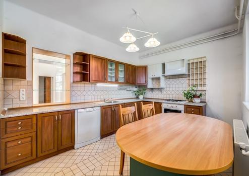 Das Haus verfügt insgesamt über vier Schlafzimmer, ein Arbeitszimmer und zwei geräumige Wohnzimmer und bietet somit eine komfortable Raumaufteilung für eine größere Familie. Zusätzlich zur Wohnfläche stehen knapp 100 m² Lagerfläche zur Verfügung, darunter eine geschlossene Ebene unter dem Garten. Das Gebäude verfügt über eine stabile Baukonstruktion aus dem Jahr 1995 mit einem den Geländeverhältnissen angepassten Niveauausgleich, verstärkten Stützmauern und einem soliden Fundament. Beheizt wird das Haus mit einem Mischbrennstoffkessel von Totya und einem anschließbaren Pelletbrenner von Ferroli, mit 1000 Liter Pufferspeicher und Heizkörperwärmeübertragung. Im vergangenen Jahr erhielten die Fenster im Erdgeschoss eine moderne Dreifach-Wärmeschutzverglasung und zudem wurde eine neue, isolierte Sicherheitseingangstür eingebaut.