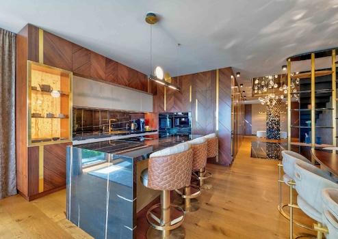 A prémium hidegburkolatok Marazzi 60x120-as lapok, a lépcsőtérnél 2 extra nagy méretű Sahara Noir kőporcelán, ami visszaköszön a konyhában és TV falon is. A melegburkolatok német prémium fa parketta karc és vízálló bevonattal. A konyhában Miele háztartási gépek kerültek beépítésre, főzőlapba integrált elszívóval.