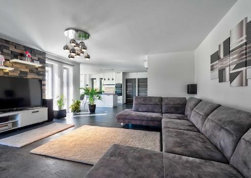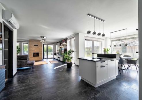Das Haus ist dank der großen Fenster sehr hell, jedes Fenster verfügt über elektrische Aluminium-Rollläden. Zusätzlich zur Fußbodenheizung gibt es einen spektakulären KAMIN im Wohnzimmer und ein 8-kW-SOLARPANEL auf dem Dach trägt dazu bei, das Haus mit ENERGIEEFFEKTIVER Energie zu versorgen.
