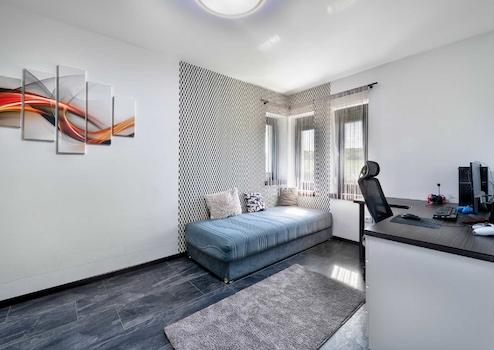 A kényelmes méretű szülői háló saját fürdőszobával és gardróbbal szolgálja a pihenést.