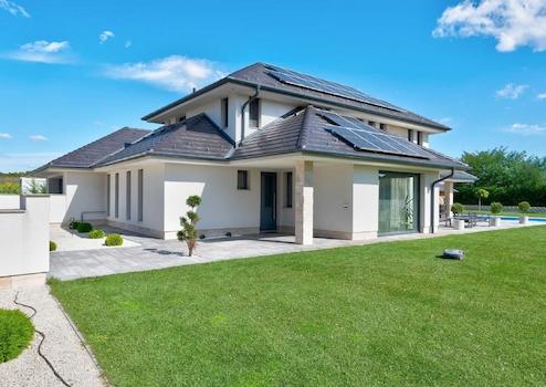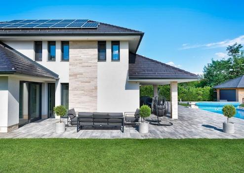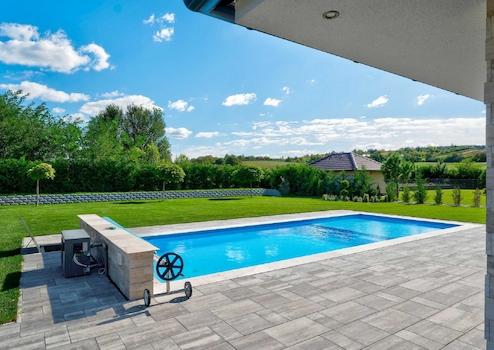 In einem wunderschönen Teil von Etyek mit Panoramablick biete ich ein 240 m2 großes, zweistöckiges, LUXUS-Familienhaus mit 5 Zimmern im modernen Stil zum Verkauf an, mit einem 1549 m2 großen Grundstück, einer GARAGE mit 5 Stellplätzen und einem beheizten Außenpool.