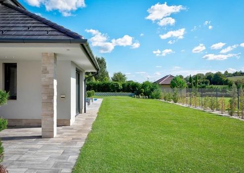 A PANORÁMÁS kertben programozott Gardena robotfűnyíró gondoskodik a fűnyírásról.