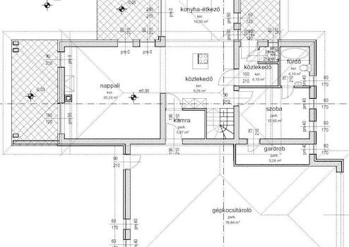 A földszinti rész fontos része a csaknem 80 m2-es, 5 gépkocsi tárolására alkalmas, világos GARÁZS.
