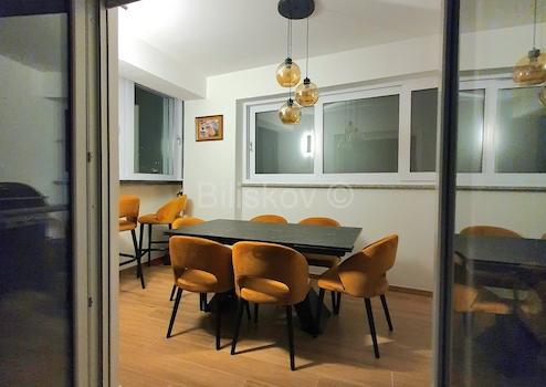 Die Wohnung wurde 2024 vollständig renoviert und modern nach höchsten Standards eingerichtet. Vom Wohnzimmer und der Loggia aus geniesst man einen schönen Blick auf das Meer und das umliegende Grün. Fussbodenheizung ist im Wohnzimmer, Flur, in der Küche und im Bad installiert, während in den Schlafzimmern hochwertiges, lackiertes Parkett verlegt ist. Die Einbauküche ist massgefertigt und mit hochwertigen Geräten ausgestattet.