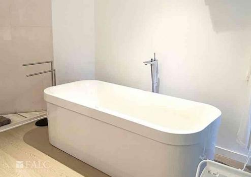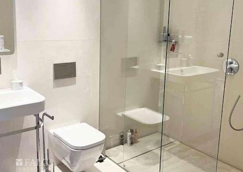 Das Apartment verfügt über drei Schlafzimmer. Die beiden Hauptschlafräume sind jeweils mit komfortablen Doppelbetten, luxuriösem Parkettboden sowie stilvollen En-Suite-Badezimmern ausgestattet, die sowohl eine Badewanne als auch eine begehbare Dusche bieten. Das dritte Schlafzimmer – ebenfalls mit Doppelbett – eignet sich alternativ hervorragend als stilvoller Arbeits- oder Büroraum. Ein weiteres Gäste-Badezimmer mit begehbarer Dusche und WC liegt gegenüber und komplettiert das Raumangebot. Alle drei Bäder verfügen über eine angenehme Fußbodenheizung, die besonders in den kühleren Monaten für Behaglichkeit sorgt. Ein separates Gäste-WC mit Waschbecken steht zusätzlich zur Verfügung.