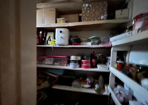 Das erste Haus wurde früher gebaut. Wenn wir hier durch die Tür gehen, gelangen wir in einen Flur, einen Korridor, von dem aus die Küche (mit Speisekammer), das Badezimmer und 2 Schlafzimmer abgehen.