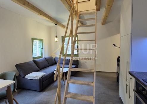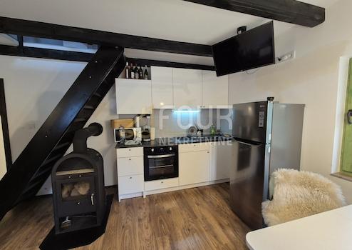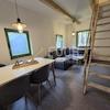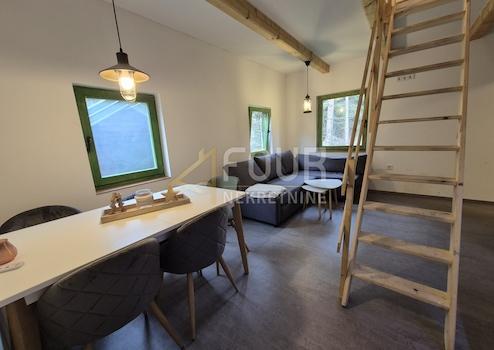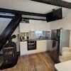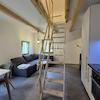 Jede Wohnung im Erdgeschoss verfügt über eine Küche mit Essbereich und ein Badezimmer, eine Holztreppe führt ins Obergeschoss, wo sich das Schlafzimmer befindet.