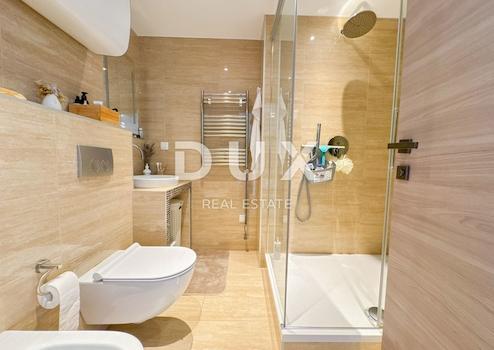 Exklusiv in unserer Agentur zum Verkauf steht eine wunderschöne Einzimmerwohnung in einem neueren Gebäude oberhalb des Zentrums von Opatija, in ruhiger und sonniger Lage. Die Wohnung befindet sich im ersten Stock und als zusätzlicher Bonus gibt es im Gebäude einen Gemeinschaftspool. Mit einer Gesamtfläche von 61 m² ist dieses Apartment ideal für alle, die ein modernes, praktisches Zuhause mit einem Gefühl von Privatsphäre und einem unwiderstehlichen Blick auf das Meer suchen. Durch große Glaswände und eine durchdachte Raumaufteilung sind die Räume hervorragend belichtet. Wohnzimmer, Esszimmer und Küche bilden eine harmonische, offene Einheit – perfekt, um den Alltag zu genießen oder entspannt zusammenzukommen. Vom Wohnzimmer gelangt man auf eine überdachte Terrasse von 10 m², die mit Gartenmöbeln und einer Markise ausgestattet ist und einen spektakulären Blick auf den Kvarner bietet. Die Wohnung verfügt über ein komfortables Schlafzimmer, ein modernes Badezimmer und einen eigenen Garagenstellplatz. Das Gebäude verfügt über einen Aufzug, wird regelmäßig gewartet und weist insgesamt eine hochwertige Bauweise auf. Die Wohnung wurde ausschließlich als private Sommerresidenz genutzt und wird mit einer praktisch neuen Küche sowie Einbauschränken verkauft, die sich hervorragend zur Organisation und Aufbewahrung eignen. Was die Lage betrifft, ist alles in Ihrer Reichweite – das Zentrum von Opatija und der Strand sind nur 500 Meter entfernt. Ičići ist 5 Autominuten entfernt, Volosko 3 Minuten und Lovran ist in maximal 10 Minuten zu erreichen. In unmittelbarer Nähe befinden sich Geschäfte, Restaurants, Cafés sowie Promenaden, die am Meer entlang führen. Die Wohnungsgröße beträgt 61 m² + Garagenstellplatz und eine überdachte Terrasse von 10 m², was eine Verkaufseinheit von 71 m² ergibt. Zur Vereinbarung einer Immobilienbesichtigung rufen Sie einen Makler Ihres Vertrauens an – Beratung auch auf Deutsch möglich.