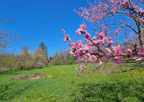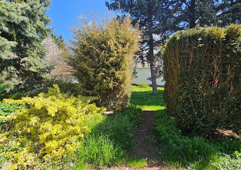 Die Grundstücksfläche beträgt 2998 m², ist in zwei Teile aufgeteilt, gepflegt und mit Obstbäumen bepflanzt. (Birne, Gelb und Pfirsich-Pflaume-Kirsche und Walnuss)