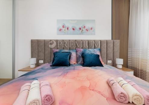 In einer attraktiven Lage in Malinska, nur 700 Meter vom Stadtzentrum entfernt, wird ein neues, modernes Doppelhaus mit einer Nettofläche von 97 m², bestehend aus Erdgeschoss und Obergeschoss, zum Verkauf angeboten.