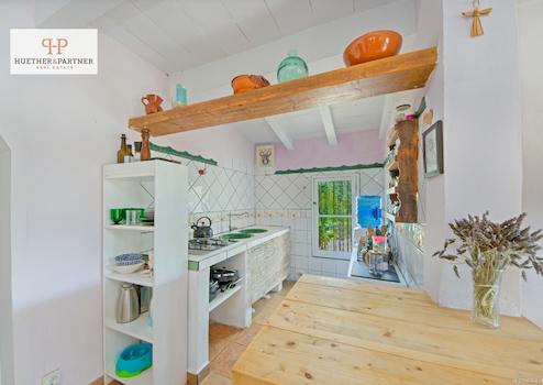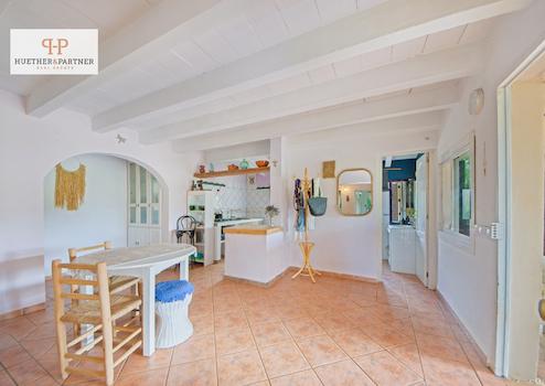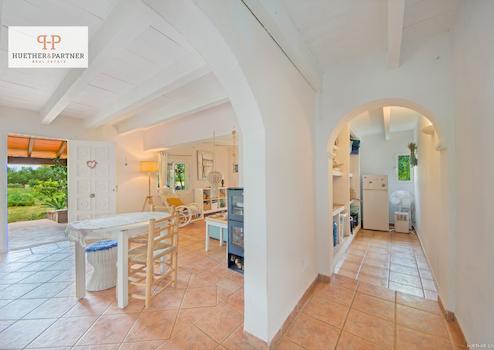 Diese zauberhafte Finca besticht durch ihren einladenden Wohnraum mit offener Küche, der einen direkten Zugang zur überdachten Terrasse und dem schönen Garten bietet.