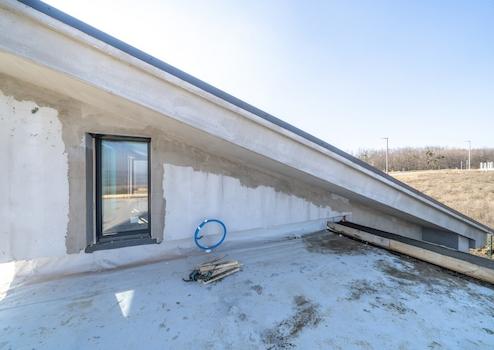 Tetőszerkezet: Modern, lapostetős kialakítás, amely elegáns, letisztult megjelenést biztosít az épületnek.
