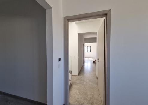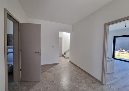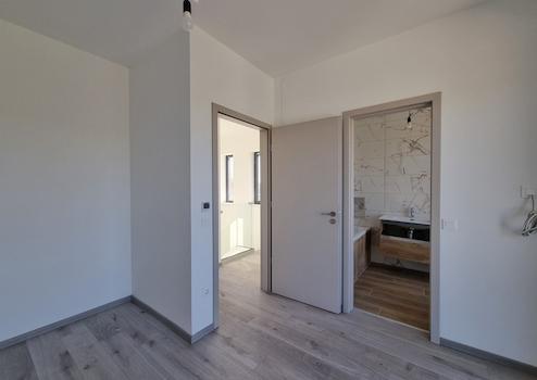 A ház nappali + 4,5 szobás, földszinten egy hatalmas, világos, amerikai konyhás nappali fogad, ahová egész nap ömlik be a természetes fény a méretes üvegfelületeken át. Két különálló hálószoba található ezen a szinten, mindegyik saját gardróbbal és fürdővel – maximális kényelem, kompromisszumok nélkül. Ezen kívül van még egy vendégmosdó, valamint egy praktikus háztartási helyiség is. Az emeleten további két stílusosan kialakított hálószoba vár, amelyekhez saját panorámás terasz és luxusfürdő tartozik – itt tényleg akár a kádból is élvezheted a naplementét!
