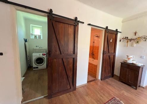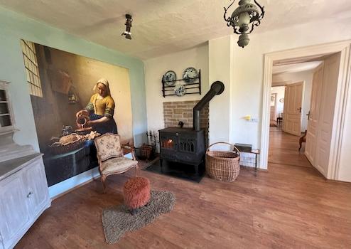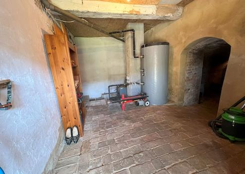 A kandalló belülről megközelíthető, kiváló tárolási lehetőségeket biztosító pincébe vezet. Emellett különálló, saját bejárattal rendelkező vendégszoba is található - ideális vendégek számára vagy home office-ként.
