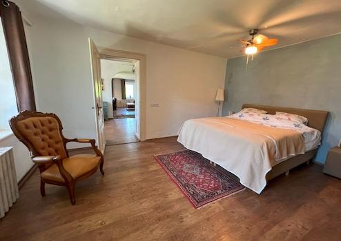 Grundstück: Der Hof beherbergt mehrere Nebengebäude, darunter einen Stall, Schuppen, eine Garage, eine Sommerküche sowie eine großzügige überdachte Terrasse mit 40 m². Die Gegebenheiten der Immobilie ermöglichen die Haltung von Pferden oder sogar den Start einer kleinen Landwirtschaft.