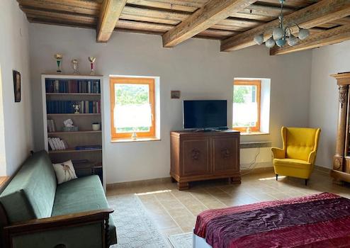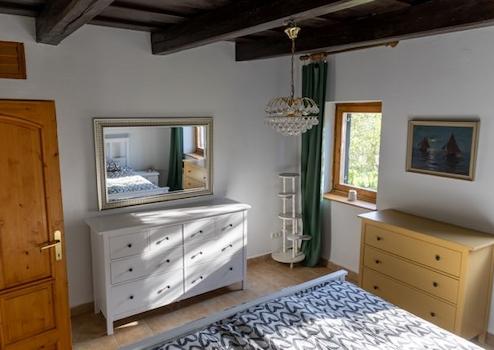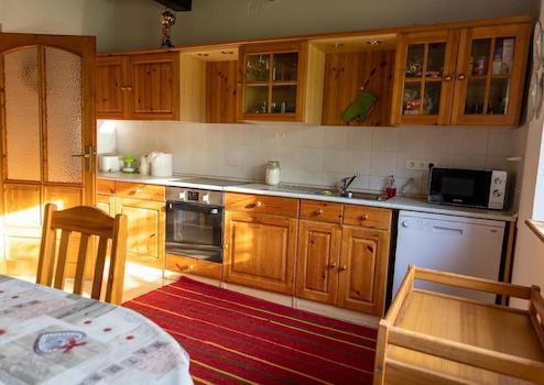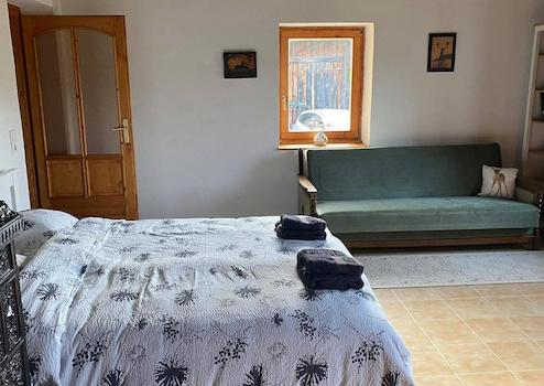 Meines Haus (90qm) liegt in Kercaszomor, einer klassischen Őrség-Siedlung. Es liegt 10 km vom fröhlichen Treiben von Őriszentpéter entfernt. Das Bauernhaus wurde vor über 100 Jahren aus Ziegeln gebaut, ein typisches Órség-Haus mit seltenen, originalen Balken im Tulpenmuster, die den Geist alter Zeiten heraufbeschwören. Das Haus verfügt über 50 cm dicke Wände, sodass es im Sommer angenehm kühl ist und im Winter ein Kachelofen und Elektroheizung für wohlige Wärme sorgen. Den Ansprüchen der Moderne tragen die Alarmanlage und die Solaranlage auf dem Haus Rechnung, die den jährlichen Stromverbrauch deckt. Beim Betreten des Hauses empfängt uns ein großzügiger Raum, gegenüber liegt eine voll ausgestattete, gemütliche Küche mit Kachelofen im Oma-Stil (15qm). Links befindet sich das helle Wohnzimmer (28qm) mit alten Antiquitätenmöbeln, gemütlichen Ikea-Möbeln und einem weiteren besonderen, alten Kachelofen. Der größte Schatz des Wohnzimmers sind seine Tulpenbalken, daher lohnt es sich, mit erhobenem Kopf und vor allem erhobenem Blick darin umherzugehen. Auch das Schlafzimmer (15qm) ist hell und geräumig und bietet mit einem 180cm breiten Doppelbett bequem Platz. Die Einrichtung dieses Zimmers orientiert sich stark am Vintage-Trend. Auch das Badezimmer ist angenehm geräumig und verfügt über eine Dusche und ein Fenster. Vom Bad aus gelangt man in einen betonierten Dachboden über die gesamte Hauslänge, der bei Bedarf ausgebaut werden kann und auch der großzügige Kellerraum bietet Platz für alles. Die Gesamtfläche von Haus und Garten beträgt 1363 qm. Der Garten ist mit überraschend blühenden, fabelhaften Blumen und Bäumen geschmückt und es gibt auch einen Gemüsegarten und einen Hühnerstall. Hinter dem Tulpenzaun befindet sich zudem ein intimer Gartenteil, der von der Straße aus nicht einsehbar ist. Zum Haus gehört außerdem eine ca. 45 m² große Scheune, die als Garage (für 2 Autos) und Lager genutzt werden kann. Das Cottage ist im Sommer ein erfolgreiches, voll ausgelastetes Gästehaus mit einer steigenden Zahl wiederkehrender Gäste, sodass jeder mit solchen Ambitionen die Möglichkeit dazu hat.