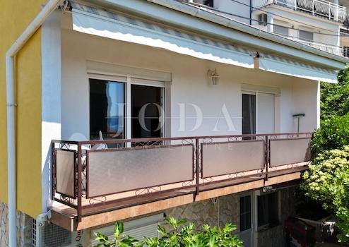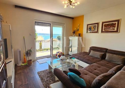 Im ersten Stock befindet sich eine geräumige Wohnung bestehend aus zwei Schlafzimmern, einem Badezimmer, einer Toilette, einem offenen Wohnzimmer und einer Küche sowie zwei Balkonen im ersten Stock mit Meerblick.