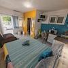 Das Erdgeschoss ist für Gäste oder zur Vermietung vorgesehen, da es aus einem Studio-Apartment und einem Apartment mit einem großen Schlafzimmer mit direktem Zugang zum angelegten Garten besteht. Das Erdgeschoss kann zu einer größeren Wohnung umgebaut werden.