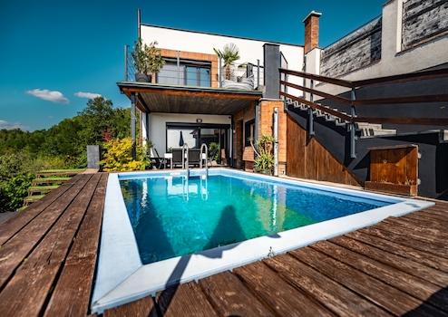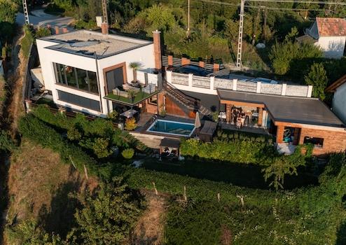 Ez az ingatlan a tökéletes választás, ha csendes, nyugodt otthont keresel extrákkal: medencével, szaunával, sok terasszal, boros pincével és legfőképp pazar kilátással.