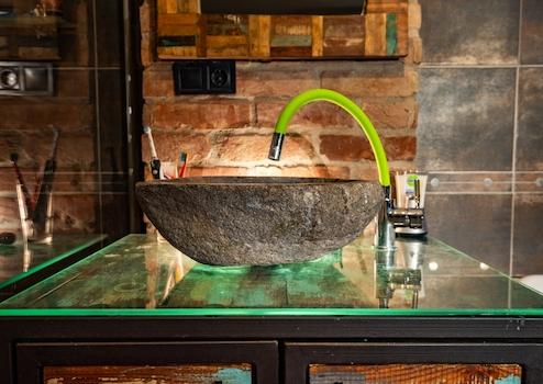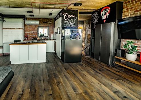 - Im obersten Stockwerk der einzigartig eingerichteten Loft-Immobilie befindet sich ein 50 qm großes Wohnzimmer, welches der zentrale Raum, die „Seele“ des Gebäudes ist. Um die angenehme Atmosphäre und das Ambiente noch zu verstärken, wurde hier sogar ein Kamin eingebaut.