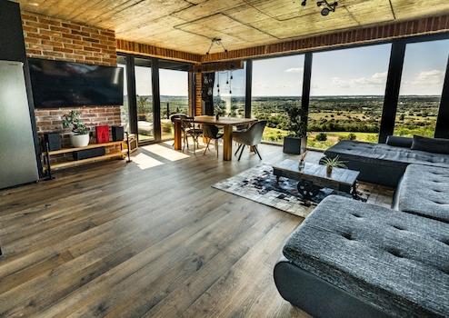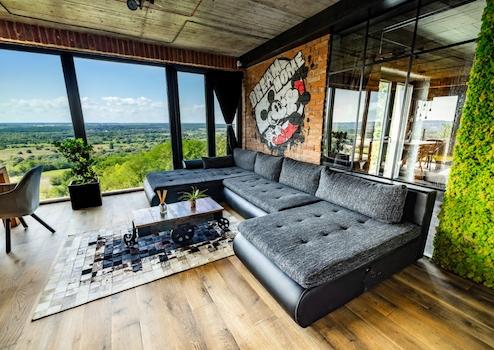 - A két szinten összesen 148 nm nagyságú családi ház egy loft ingatlan, ami magas beltérrel rendelkezik, tágas fő terekkel, minden szobából nyíló örök panorámával a városra és a környező völgyre.