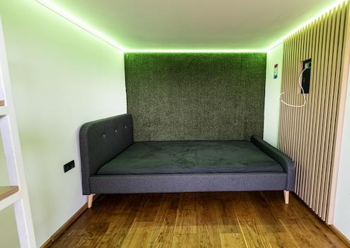 - Az egyedi berendezésű loft ingatlan legfelső szintjén található az 50 nm nagyságú nappali, ami az épület központi helyisége, "lelke". Ide kellemes hangulat és légkör fokozása miatt még egy kandalló is beépítésre került.