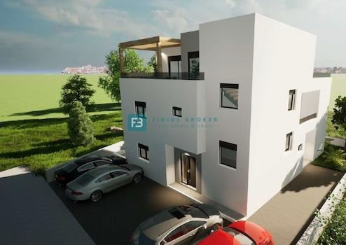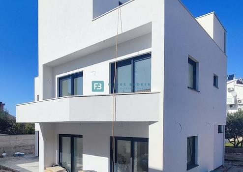 Eine neu erbaute Doppelhaushälfte in einem ruhigen und gepflegten Stadtteil, umgeben von Einfamilienhäusern. Es liegt in einer Sackgasse, was Ruhe und Privatsphäre gewährleistet. Mit einer Entfernung von nur 300 m vom Strand und 1300 m vom Stadtzentrum können Sie dem Trubel und Stress der Stadt entfliehen und sind dennoch nur wenige Minuten von allen Annehmlichkeiten entfernt, die Vodice bietet. Der Vorteil dieser Immobilie ist die dreistöckige Aufteilung, die zusätzliche Privatsphäre bietet und den Wohnraum funktionaler und komfortabler macht. Darüber hinaus verfügt jede Einheit über einen eigenen Hof und zwei Parkplätze, was für zusätzliche Bequemlichkeit und Komfort sorgt.